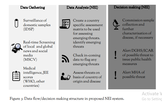 In a new research document,Ruturaj Gowaikar and Shambhavi Naik propose forming an Indian National Epidemic Intelligence (NEI) Service to monitor emerging outbreaks of novel or existing diseases, assess the threat in an Indian context, and alert public health agencies to take actions to protect Indian citizens. This service would build on India’s existing intelligence and surveillance units to create a network of trained personnel who can analyse incoming data, identify threats, secure biological samples and characterise pathogens.